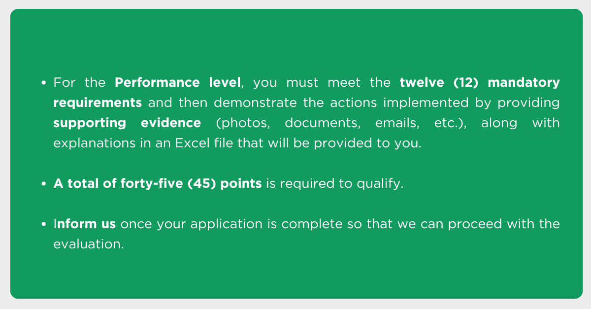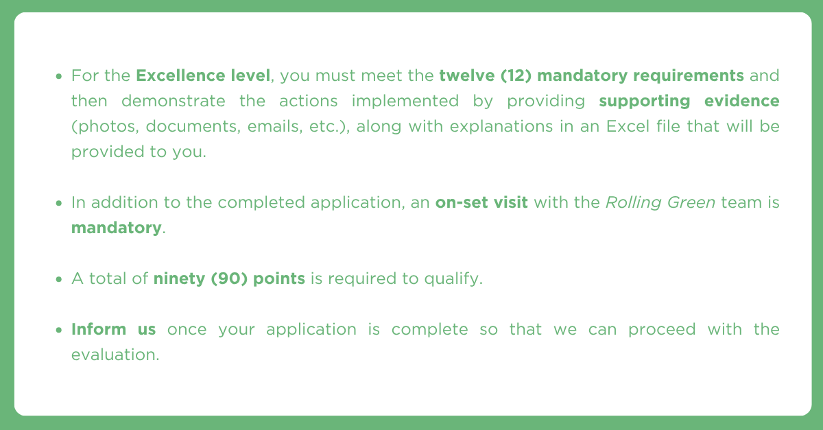 The Rolling green accreditation includes 3 levels : commitment, performance and excellence.