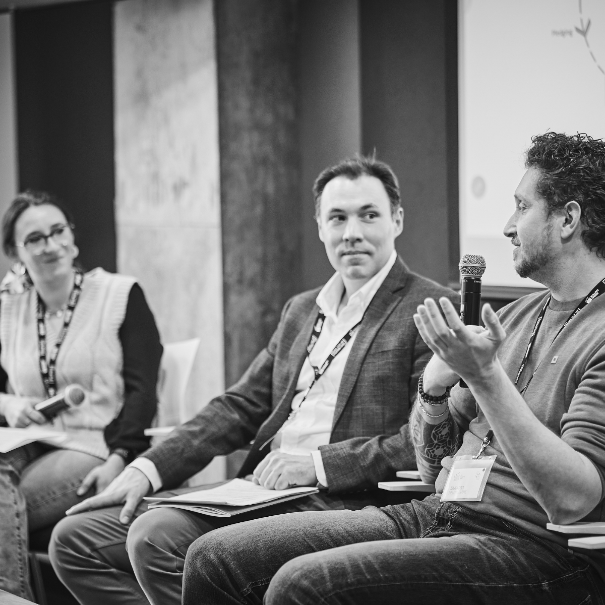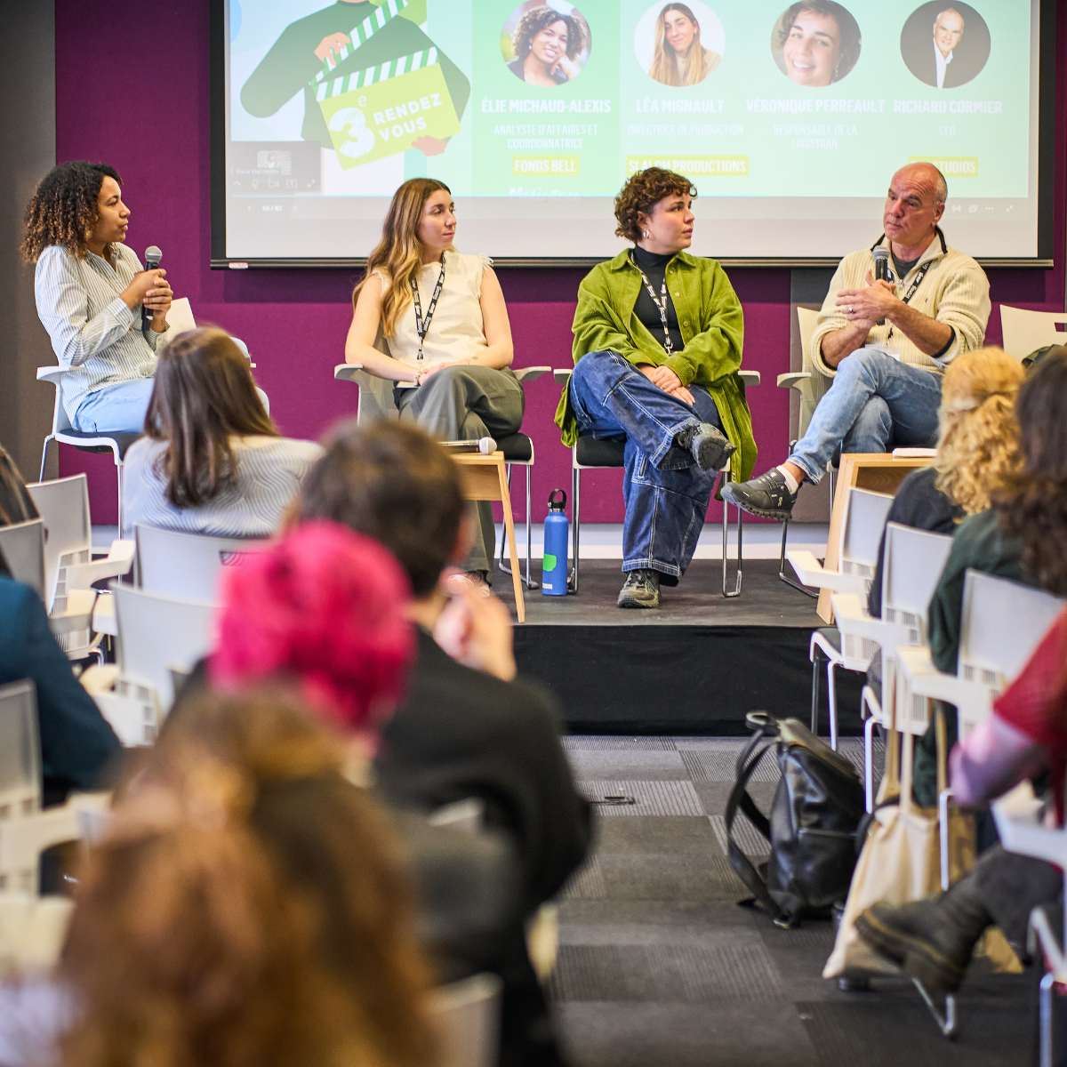 Modérée par Élie Michaud-Alexis (Fonds Bell), la table ronde a réuni les trois intervenants suivants : Léa Mignault (Slalom productions), Véronique Perrault et Richard Cormier (B79 Studios). Explorant des thématiques telles que la coproduction, les besoins des maisons de production et le rôle que peuvent jouer les studios dans le virage vert des productions, la discussion a donné lieu à de riches échanges, invitant à repenser notre industrie et son évolution nécessaire.